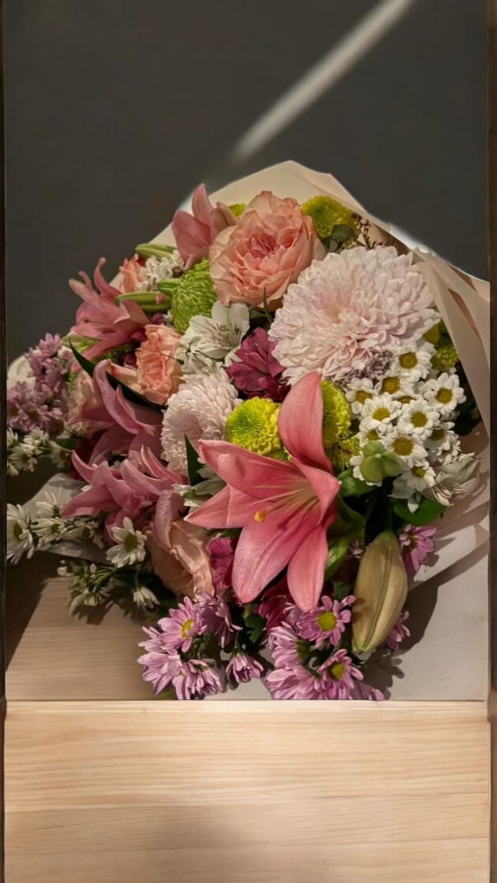 Increible Arreglo floral XL con toda clase de flores de estación. La perfecta combinación de texturas colores y aromas.